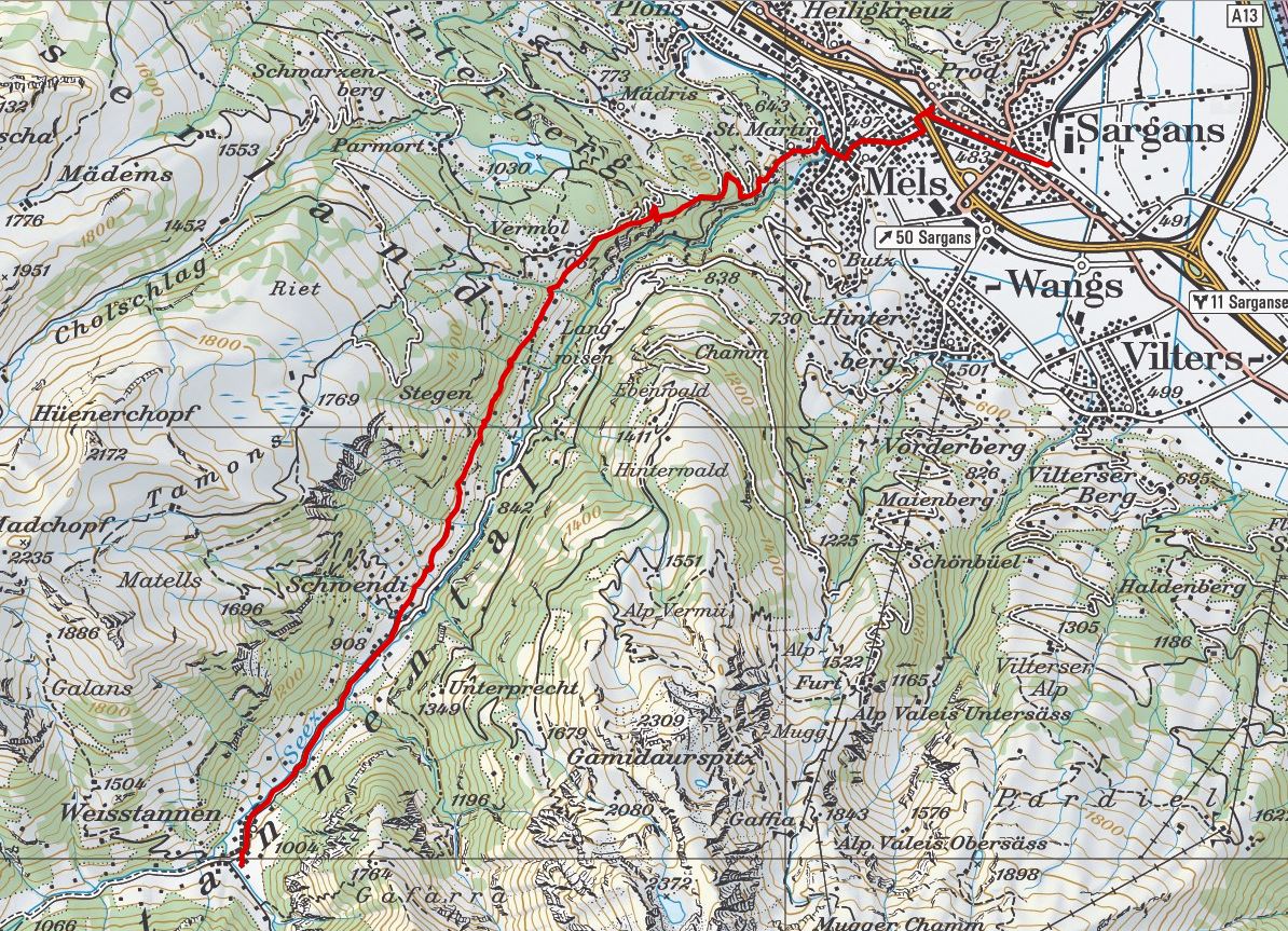Sargans - Mels - Vermol - Schwendi - Weisstannen