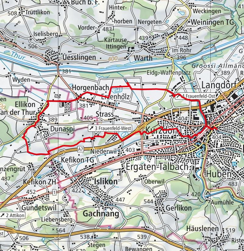 Frauenfeld - Galgenholz - Hugiweiher - Erzenholz - Ellikon an der Thur - Kefikon - Holiberg - Ägelsee - Frauenfeld