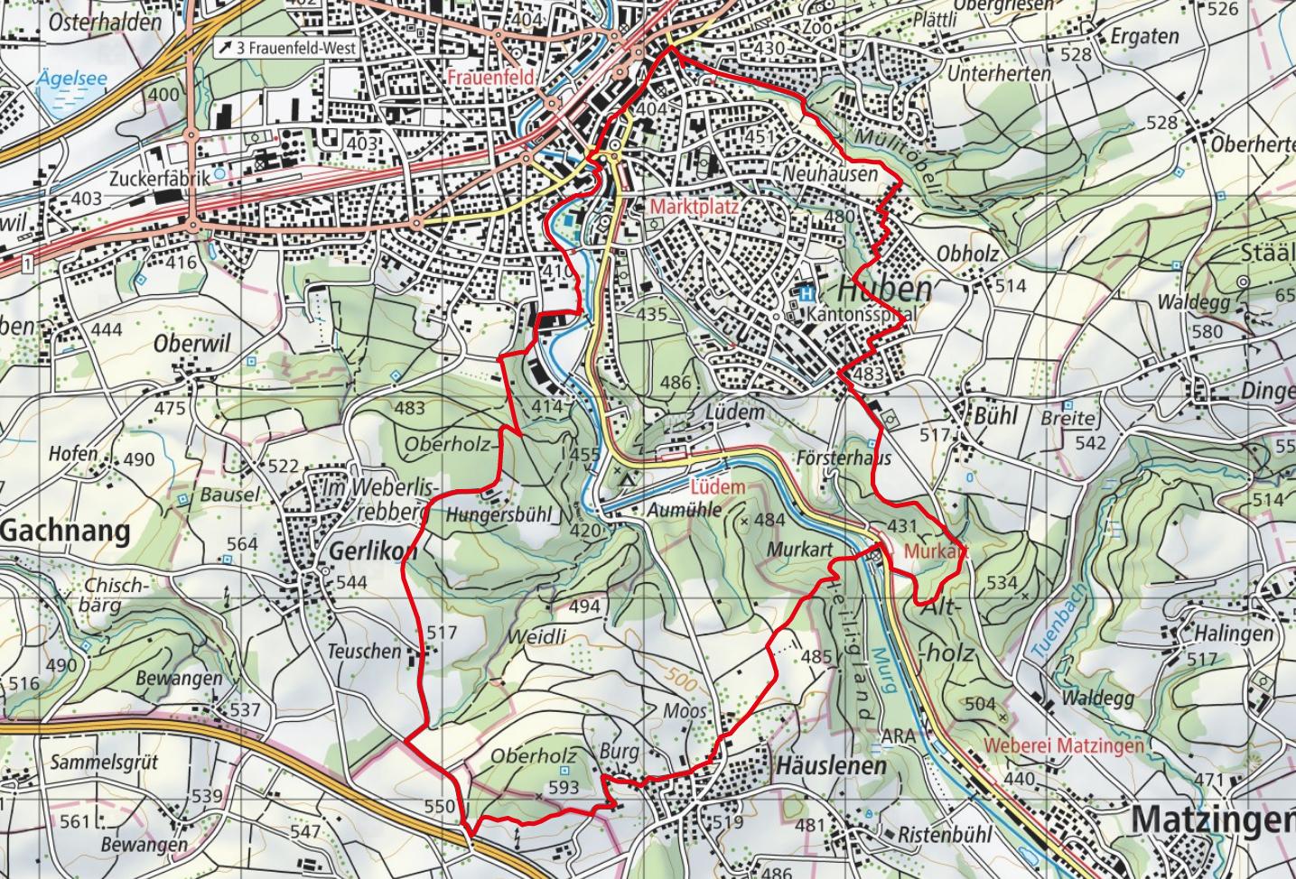 Frauenfeld - Huben - Murkart - Häuslenen - Oberholz - Teuschen - Hungersbühl - Frauenfeld