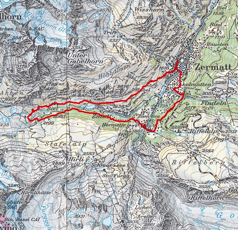 Zermatt - Zmutt - Chalbermatten - Stafelalp - Furi - Findelbach - Zermatt