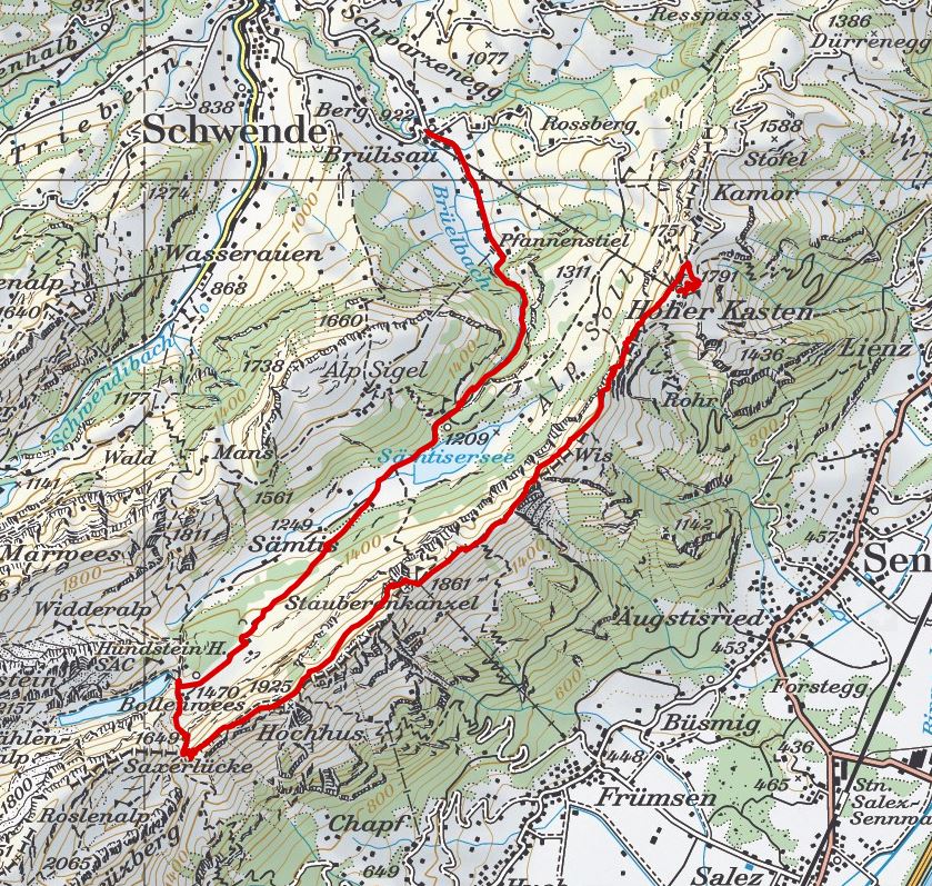 Brülisau - Plattenbödeli - Sämtisersee - Bollenwees - Saxerlücke - Stauberen - Hoher Kasten