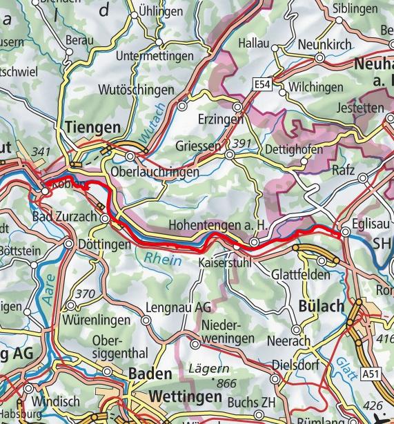 Eglisau - Rheinsfelden - Zweidlen - Kaiserstuhl - Rümikon - Mellikon - Rekingen - Bad Zurzach - Barz - Rietheim - Koblenz