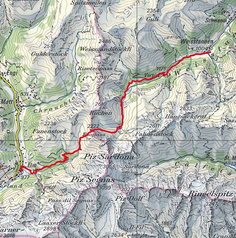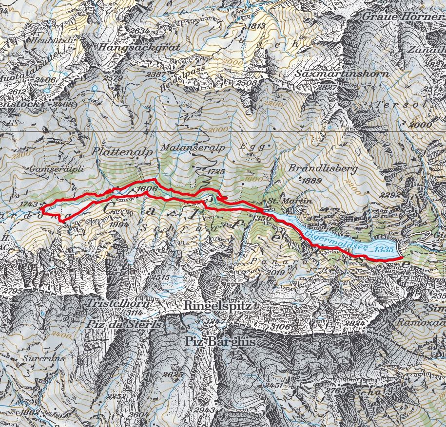 Gigerwald-Staudamm - St. Martin - Vordere Ebni - Hintere Ebni - Sardonaalp - Stübliwald - St. Martin - Gigerwald-Staudamm