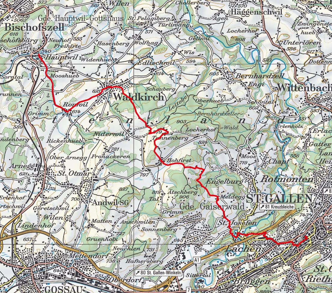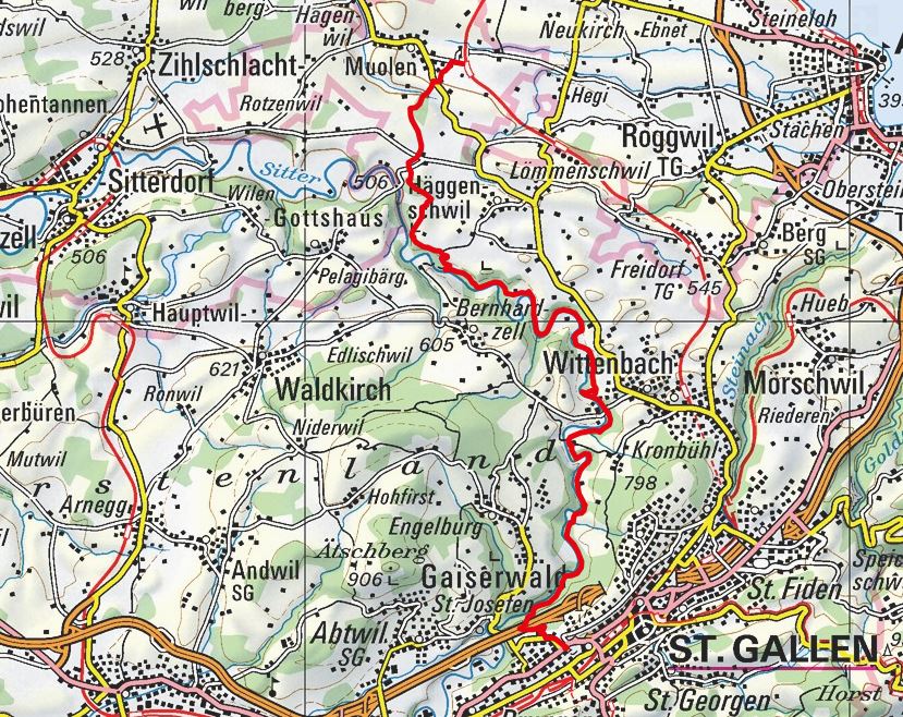 Muolen - Rohrenmoos - Kollerberg - Neu Ramschwag - Wittenbach - Erlenholz - Sitterwald - St. Gallen