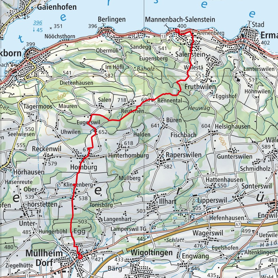 Müllheim - Schloss Klingenberg - Homburg - Haidenhaus -Rennental - Götscheholz - Salenstein - Arenenberg - Mannenbach