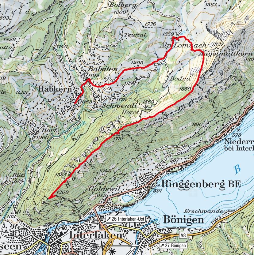 Interlaken - Bönigen - Wasserfall Erschwanden - Brand - Fura - Mülibachfall - Iseltwald - Farnihubel - Hoflue - Giessbachfälle - Engi - Aaregg - Kienholz - Brienz