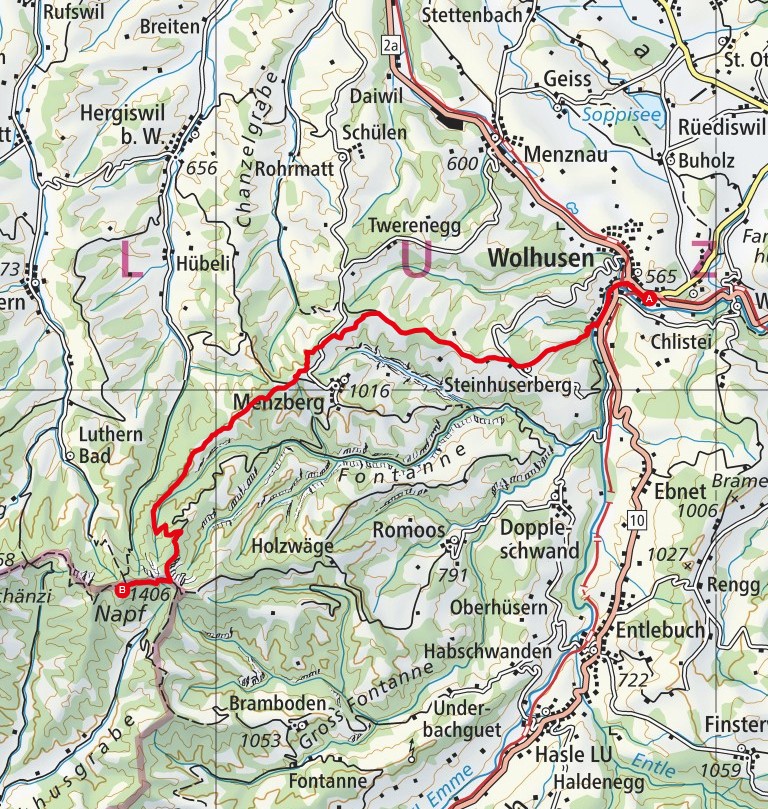 Wolhusen - Kommetsrüti - Mättenlehn - Aetzleschwand - Längenbühl - Gutenegg - Chrüzhubel - Waldighubel - Waldegg - Gitzichnubel - Chrotthütte - Stächelegg - Napf