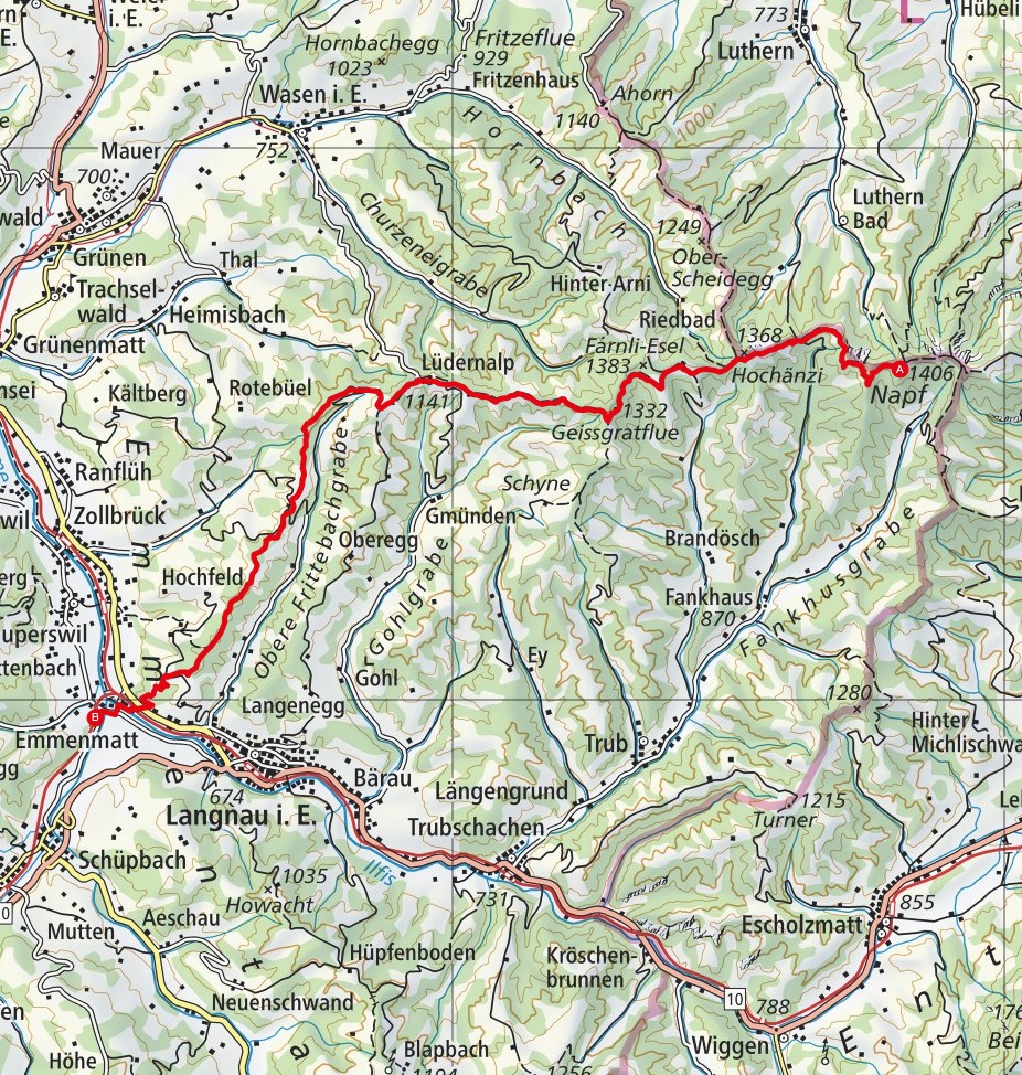 Napf - Niederenzi - Hochänzi - Oberlushütte - Geissgrat - Geissgratflueh - Rotchnubel - Lüderenalp - Ober Rafrüti - Obere Hollern - Geissbühlwald - Dürsrütiwald - Bagenschwand - Obermatt - Emmenmatt