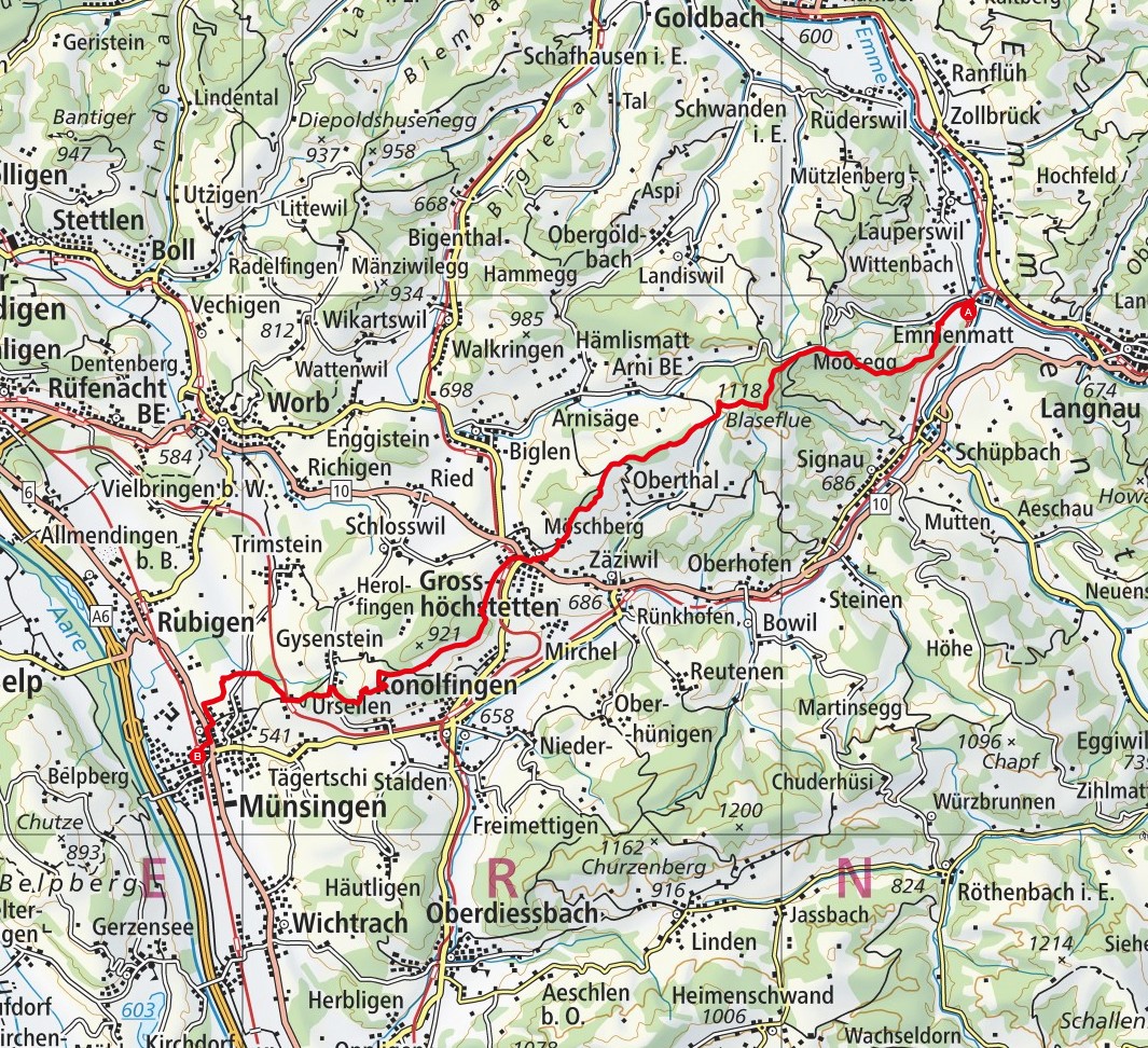 Emmenmatt - Blasen - Moosegg - Waldhäusern - Blaseflue - Neuweis - Bühl - Möschberg - Grosshöchstetten - Konolfingen - Ballenbühl - Bachsgraben - Tägertschi - Bächlen - Bärenstutz - Münsingen