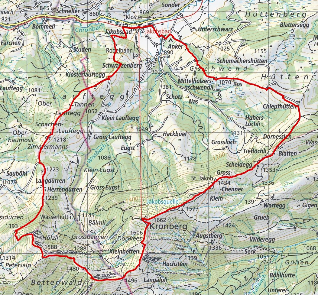 Jakobsbad - Klosterlauftegg - Dürrenspitzli - Kronberg - Scheidegg - Chlepfhütten - Jakobsbad