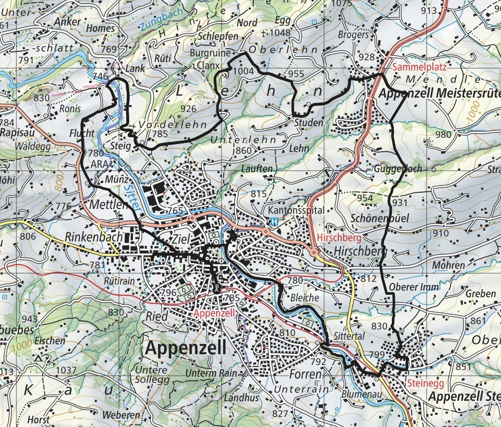Oberriet SG - Blatten - Hirschensprung - Rehag - Freienbach - Oberrieter Strüssler - Wogalp - Kapelle Bildstein - Eggerstanden - Steinegg - Forren - Appenzell