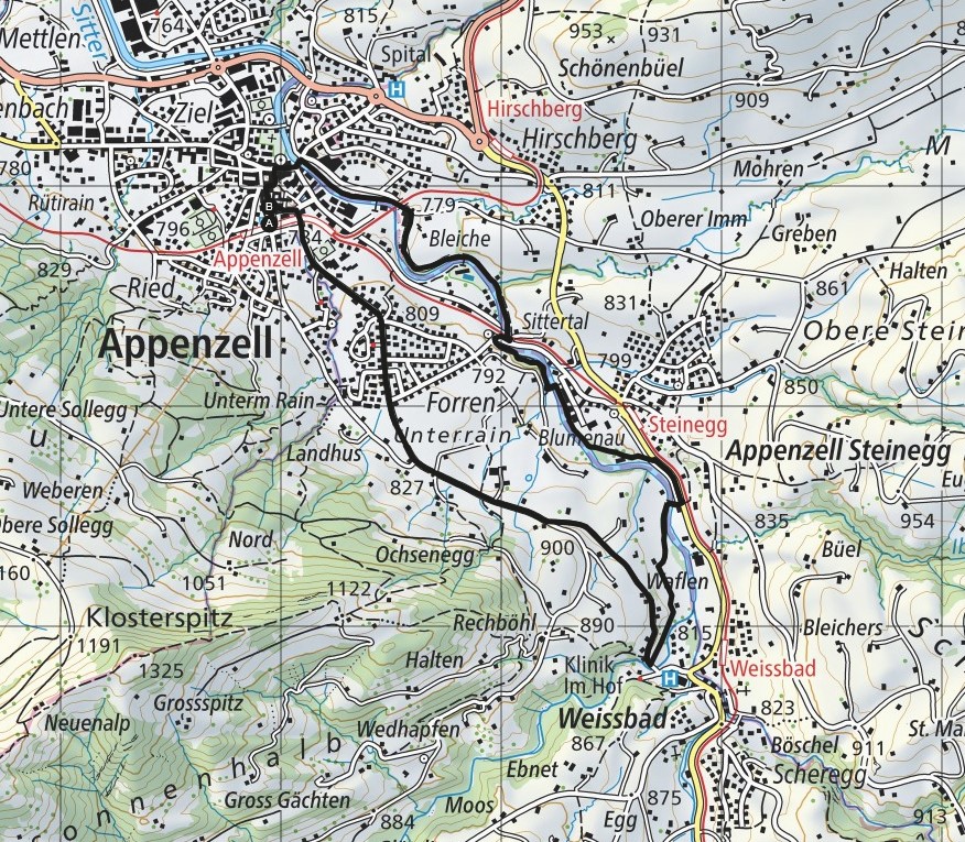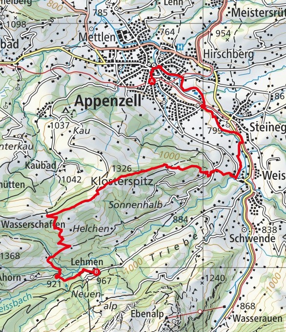 Appenzell - Bleiche - Sittertal - Steinegg - Weissbad - Rechböhl - Melchuelispitz - Klosterspitz - Neuenalp - Wasserschaffen - Leuenfall - Waldgasthaus Lehmen