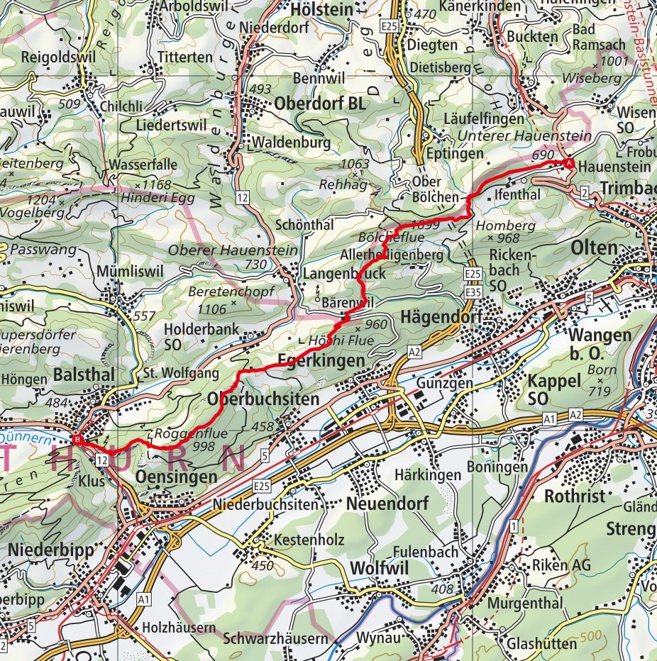 Hauenstein - Ifleter Berg - Challhöchi - Bölcheflue - Wuesthöchi - Asp - Bärenwil - Schlosshöchi - Wishöchi - Tiefmatt - Roggenschnarz - Roggenflue - Chluser Roggen - Balsthal (Thalbrücke)
