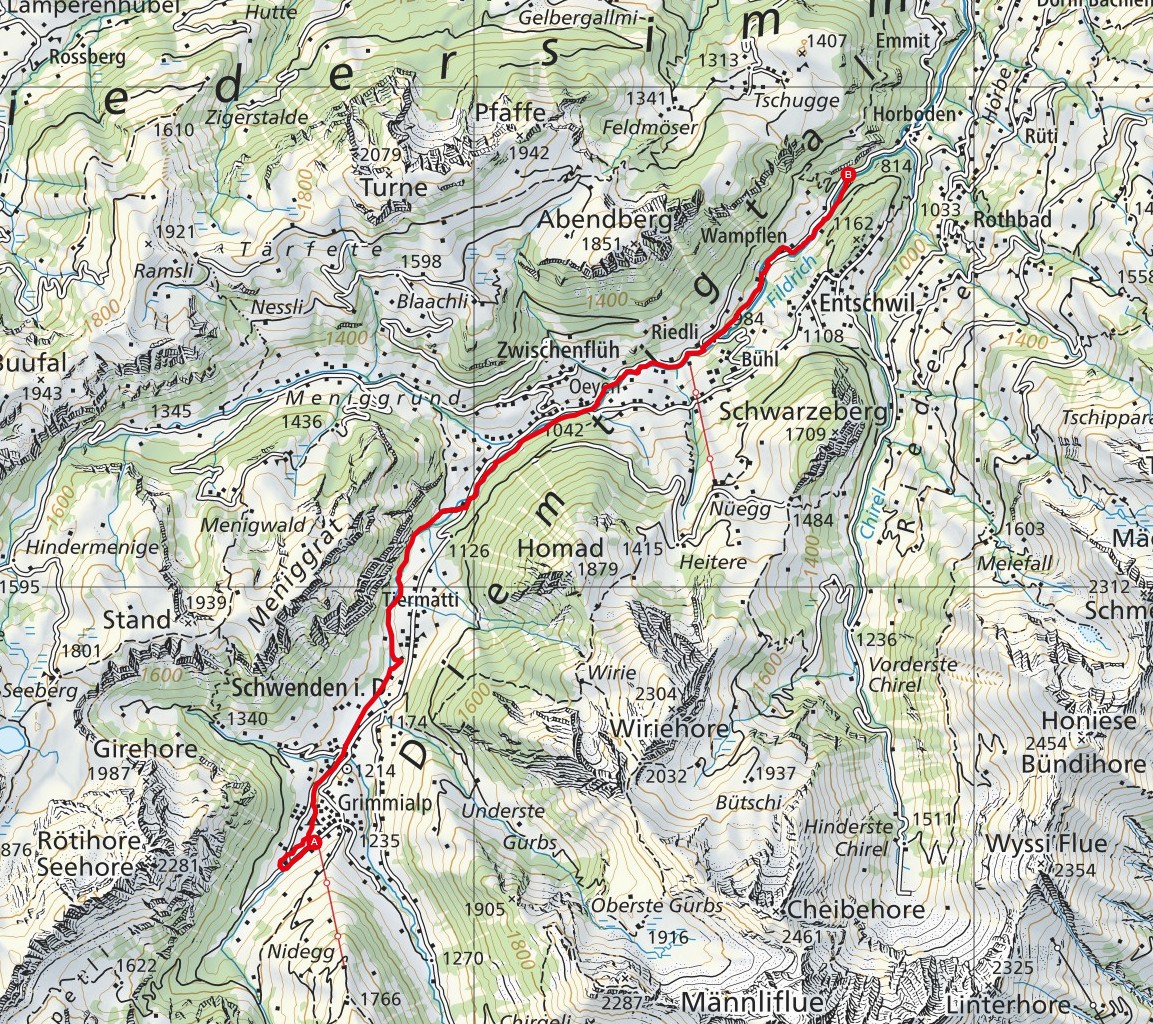 Grimmialp - Winteregg - Schwenden i. D. - Tiermatti - Anger - Narrenbach - Zwischenflüh - Riedli - Wampflen - Chollerebrügg