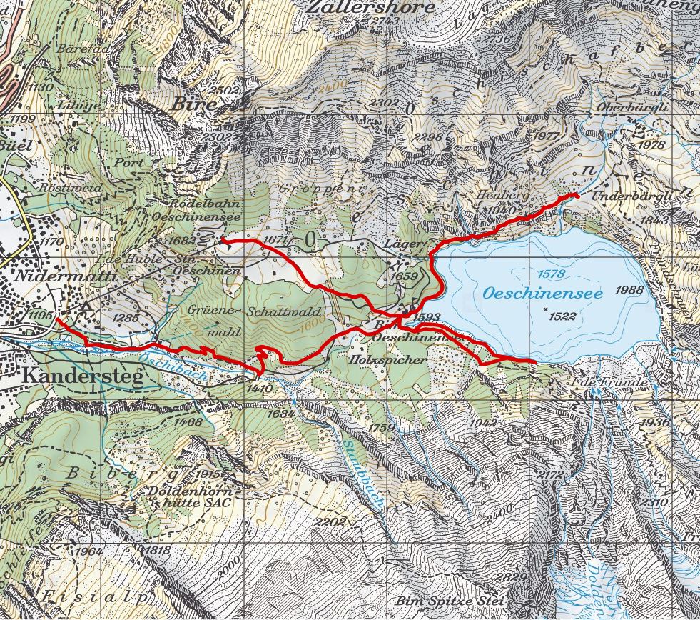 Bergstation Öschinensee - Seerundgang - Underbärgli - Berghotel Öschinensee - Kandersteg