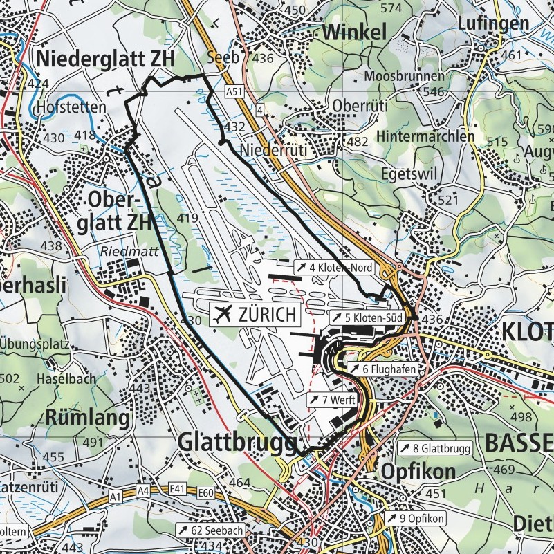 Kloten - Glattbrugg - Rümlang - Oberglatt - Bachbülacher Allmend - Rütner Allmend - Kloten