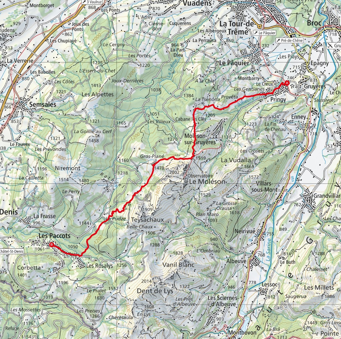 Les Paccots - Les Mayens - Sautery - Châtel-St-Denis - La Banderette - En Moille-Saulaz - Fenil-sur-Corsier - Corsier - Gilamont - Vevey