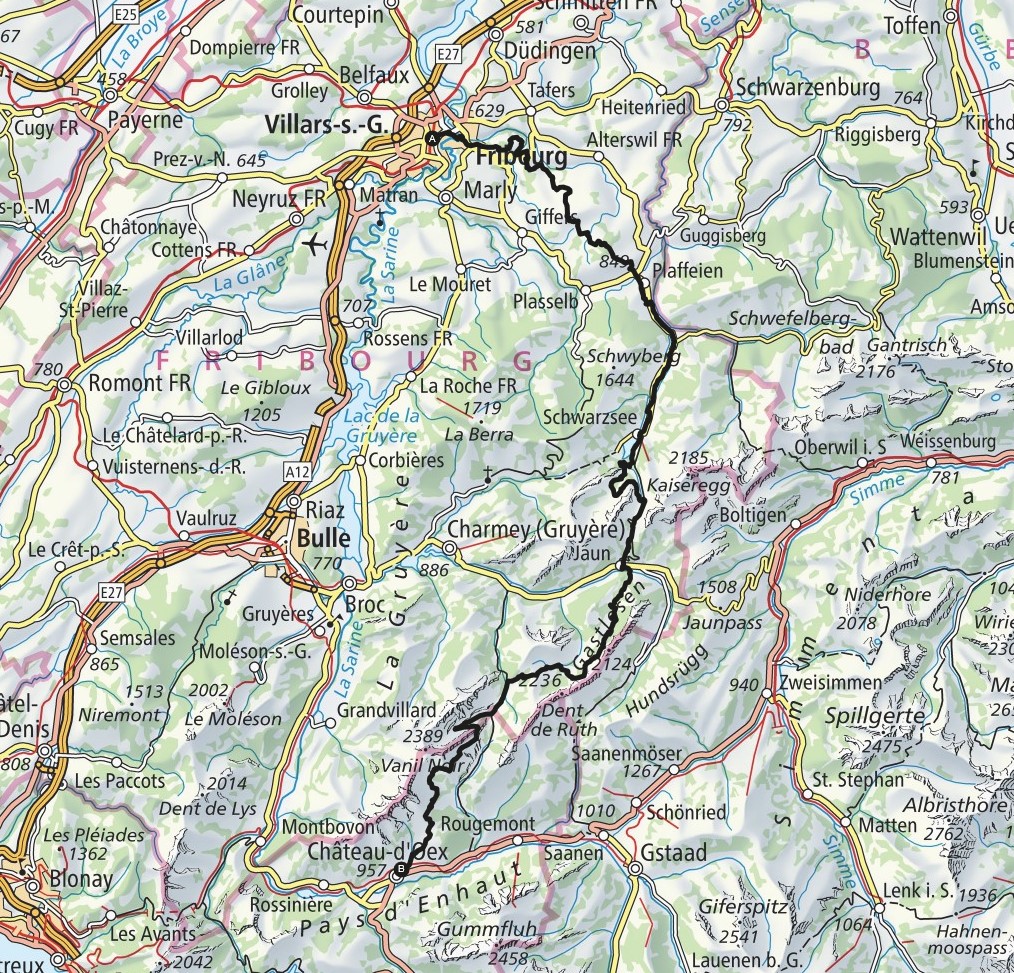 Schwarzsee - Hubel Rippa - Wälschi Rippa - Breccaschlund - Rippetli - Stierenberg - Untere Euschels - Obere Euschels - Euschelspass - Ritzlialp - Oberi Dorfallmend - Jaun