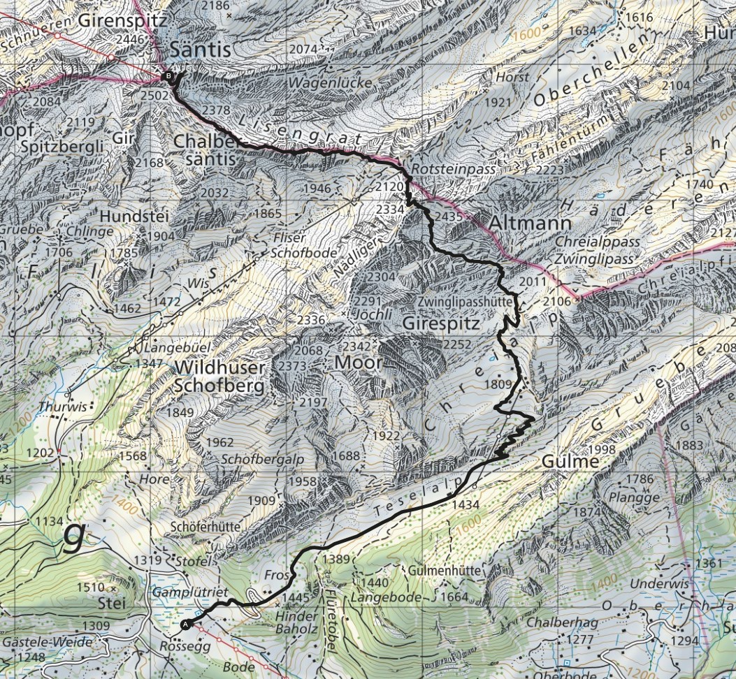 Wildhaus - Teselalp - Gruebe - Mutschensattel - Saxerlücke - Bollenwees - Fählenalp - Zwinglipass - Gamplüt - Wildhaus