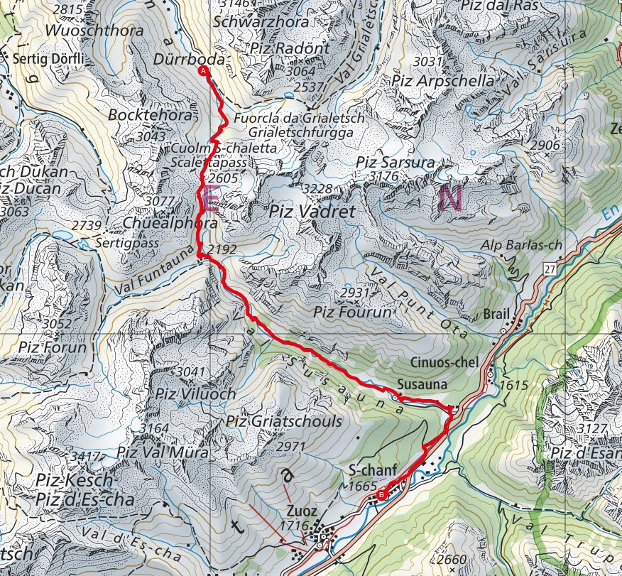 Tiefencastel - Valmala - Alvaschein - Lenz - Son Tgaschang - Resgia - Clavadoiras - Gravas - Lenzenheide - Heidess - Canols - Tgapalotta - Valbella - Parpan - Churwalden