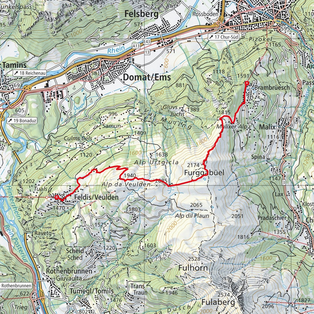 Thusis - Sils im Domleschg - Albula - Parnegl - Moir - Val da Peurs - Val Varaina - Muldain - Bot Cheua - Motta - Alvaschein - Pardis - Mistail - Prada - Tiefencastel