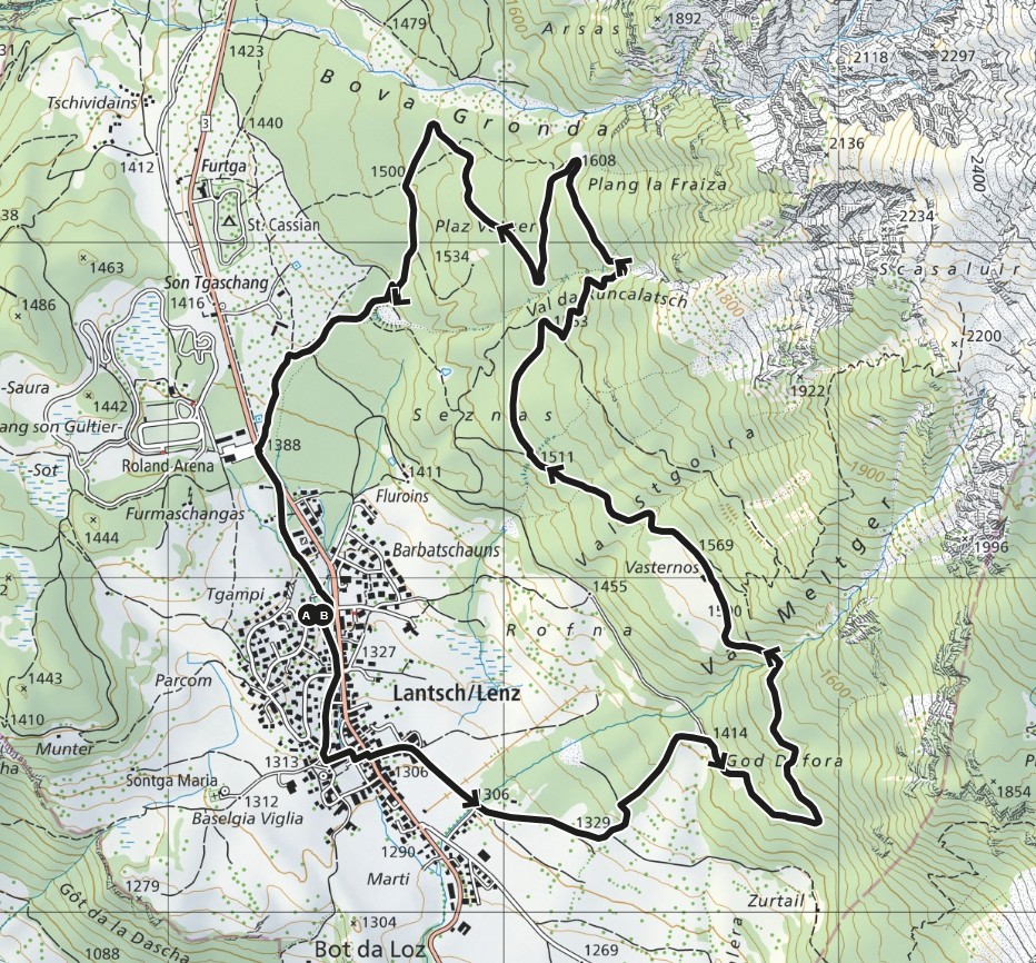 Lenz - Got Dafora - Val Meltger - Got Stgoir - Funtagna da Son Tgaschang - Bual - Plang digls Bovs - Munter - Lenz
