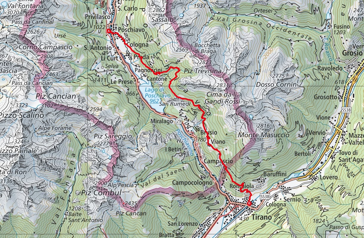 Poschiavo - Cologna - Vendület - Val da Braga - San Romerio - Val da Piaz - Predasc - Viano - Palü - Roncaiola - Tirano