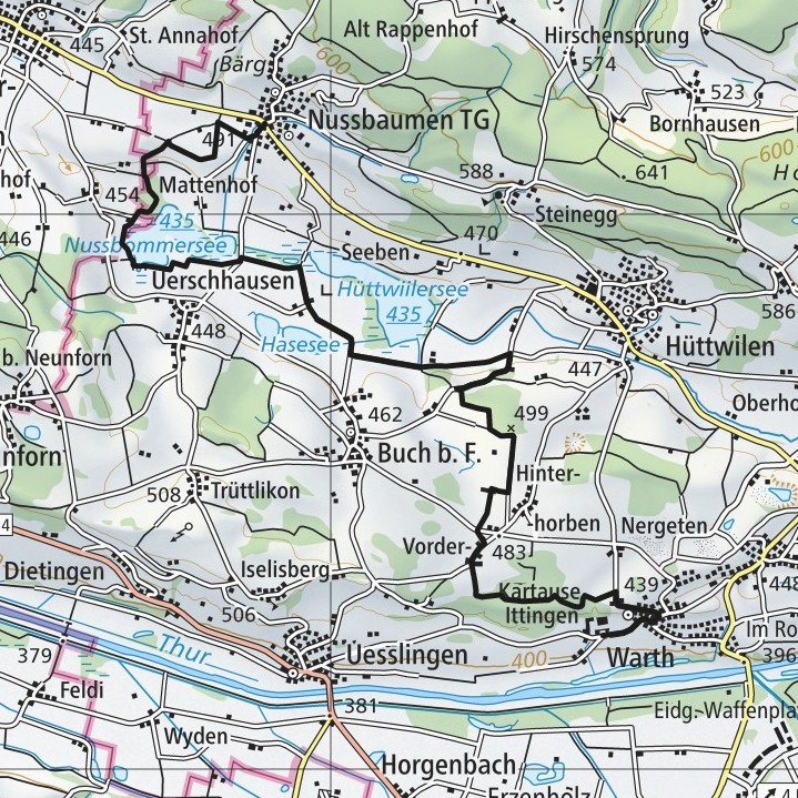 Nussbaumen - Nussbaumersee - Hüttwilersee - Ruine Helfenberg - Huebbüel - Vorderhorben - Schoren - Warth - Rorerbrüke - Frauenfeld