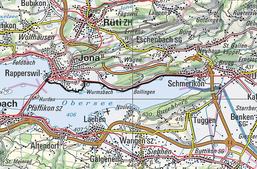 Schmerikon - Bollingen - Wurmsbach - Jona - Rapperswil - Hintermeienberg - Schwesterrain - Feldbach