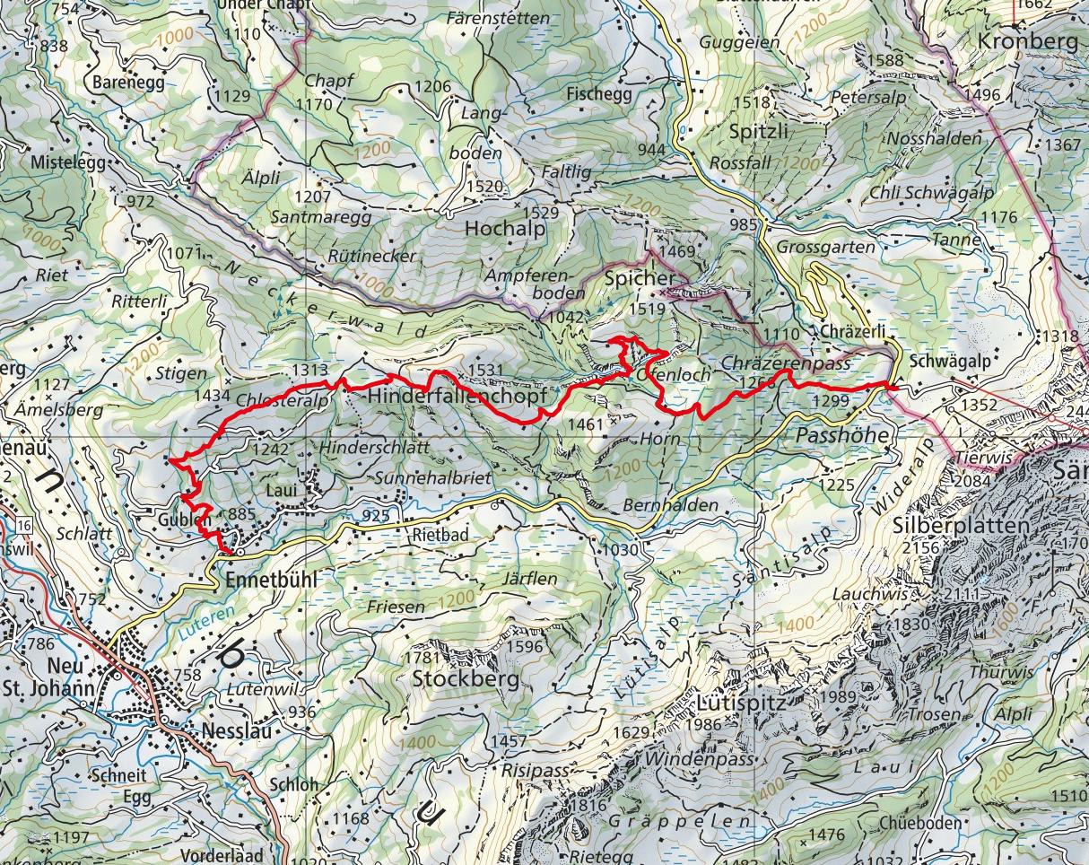 Schwägalp - Chräzerenpass - Ofenloch - Hinderfallenchopf - Chlosteralp - Ennetbühl