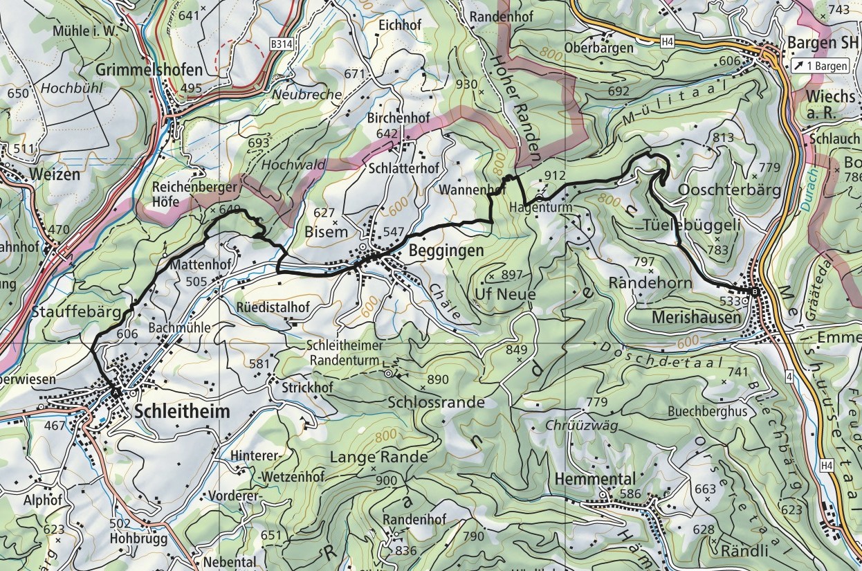 Schleitheim - Stauffebärg - Seebihalde - Beggingen - Stiegenbrünneli - Hagenturm - Ättebärg - Merishausen