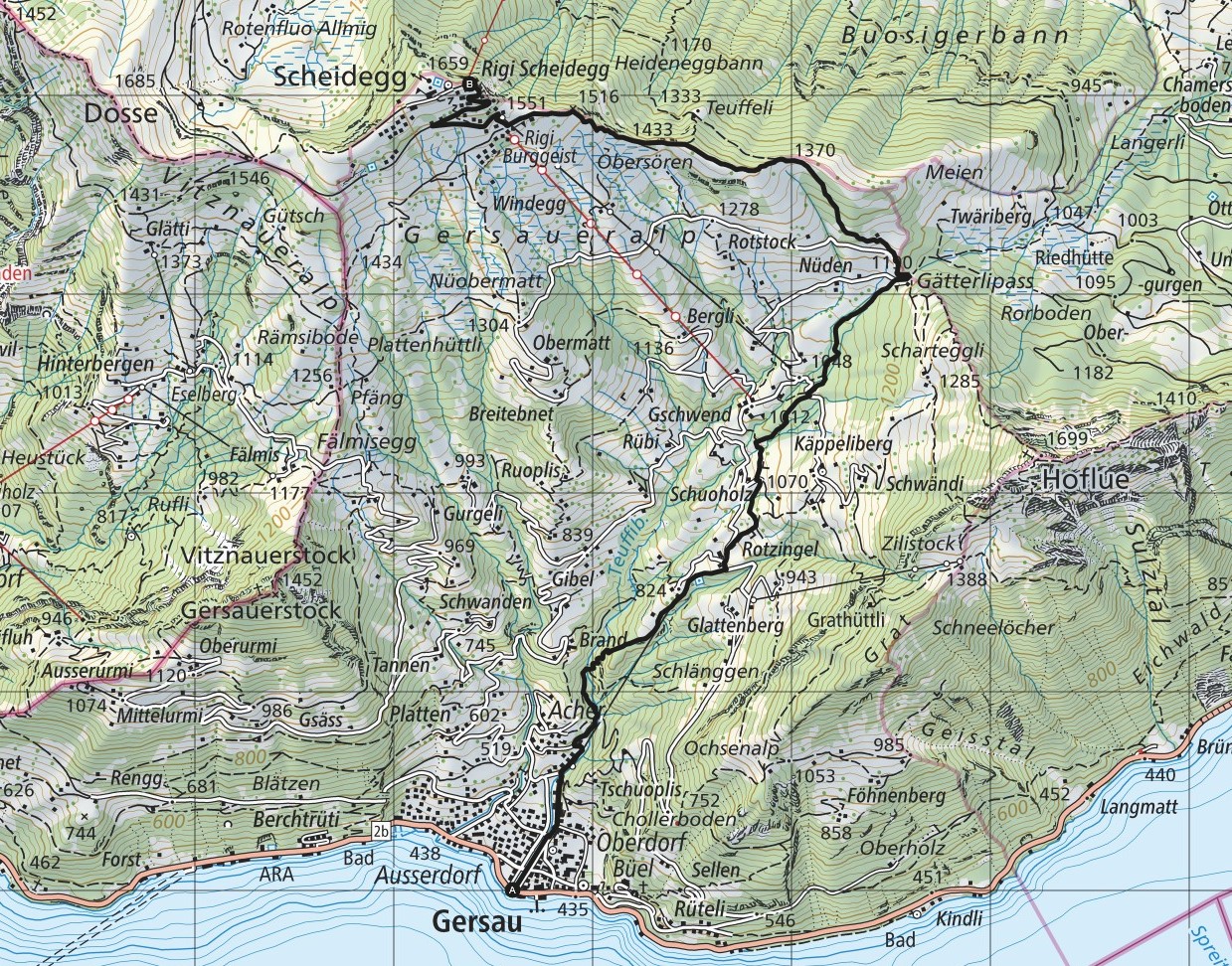 Gersau - Rotzingel - Gschwend - Gätterlipass - Höcheli - Rigi Scheidegg - Dossen - Unterstetten - Rigi First - Wölfertschen-First