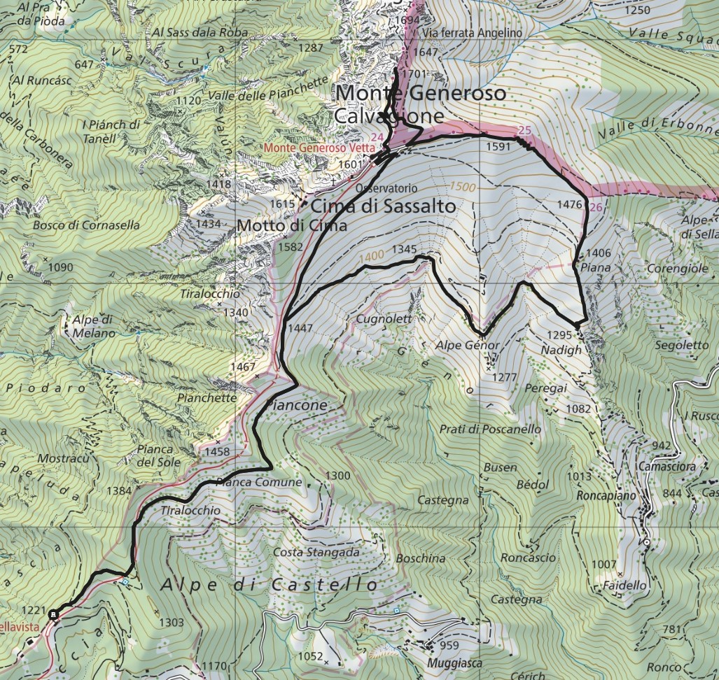 Bellvista - Tiralocchio - Piancone - Alpe Génor - Nadigh - Piana - Monte Generoso - Monte Generoso Vetta