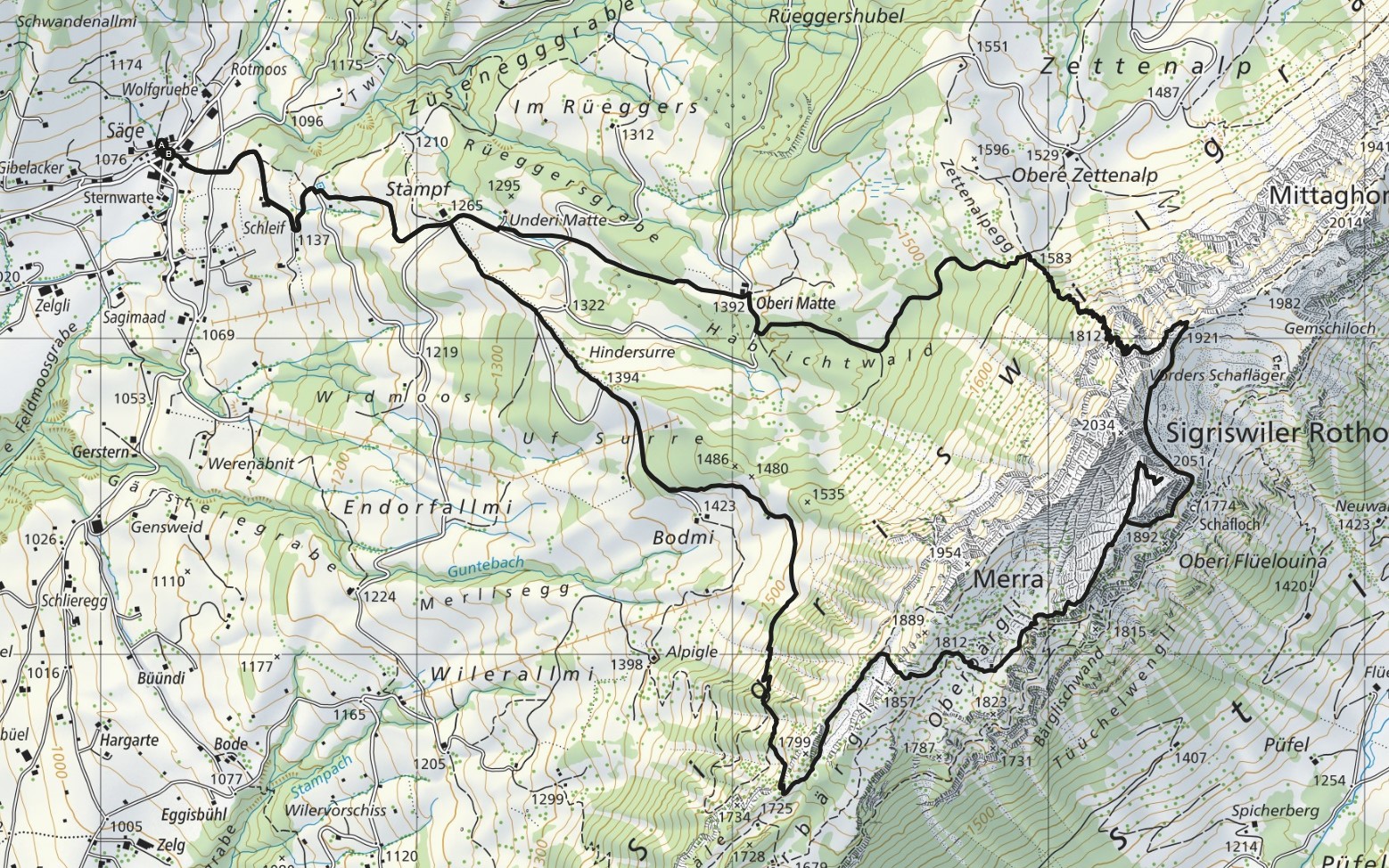 Schwanden - Stampf - Bodmi - Underbärgli - Oberbärgli - Sigriswil Rothorn - Vorders Schafläger - Zettenalpegg - Oberi Matte - Underi Matte - Stampf - Schwanden