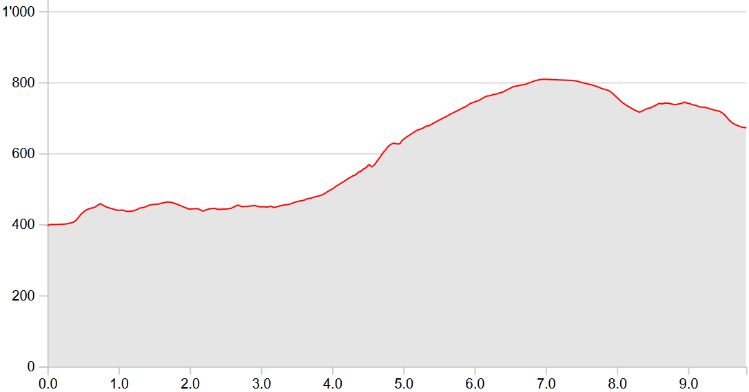 Sennwald - Britschli - Schwendi - Furnis - Plona - Ametschils - Rüthi - Rehag - Stieg - Kobelwald - Kristallhöhle - Kessiloch - Fuchsplatz - Hard - Oberau - Eichberg - Oberrüti - Brand - Krans - Rebhalde - Altstätten