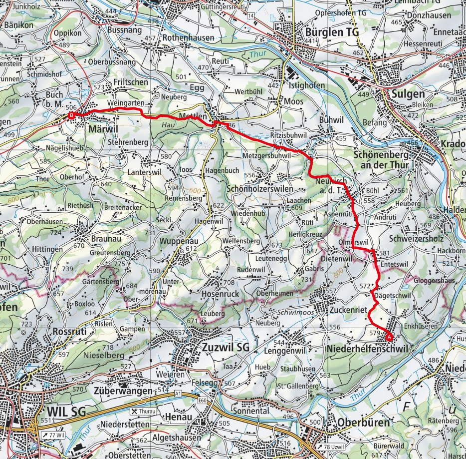 Niederhelfenschwil - Dägetschwil - Entetswil - Olmerswil - Neukirch an der Thur - Hindertöbeli - Hintermühle - Metzgersbuhwil - Hondsloch - Mettlen - Eichholz - Weingarten - Märwil