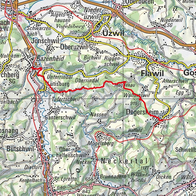 Degersheim - Ruerwald - Baldenwil - Altenberg - Spilberg - Unterschauenberg - Winzenberg - Rimensberg - Tufertschwil - Haslen - Bazenheid