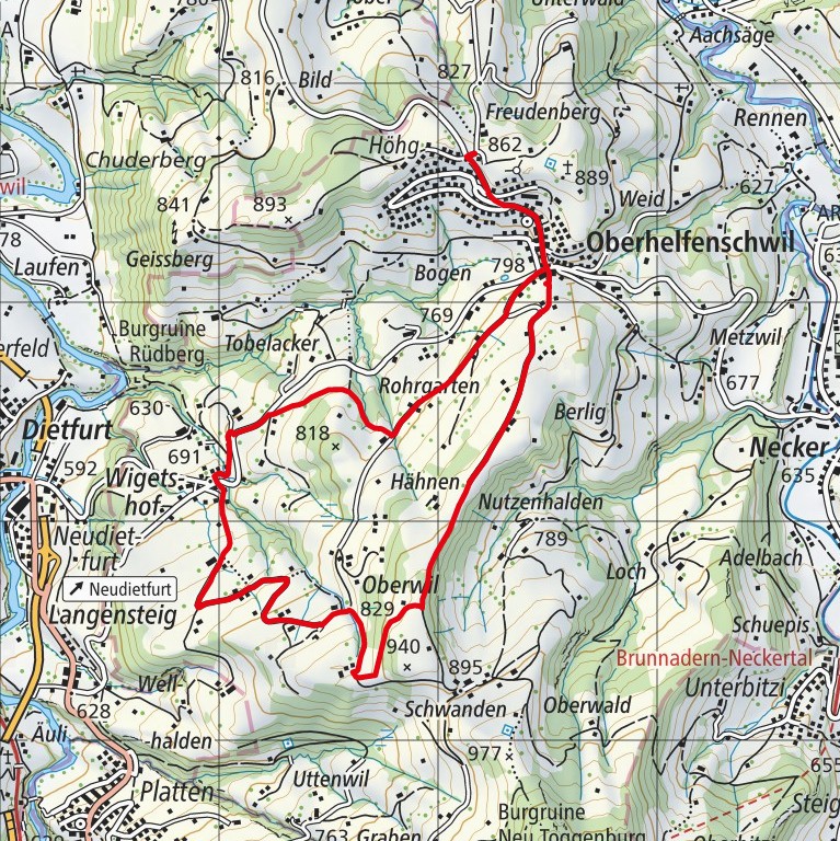 Freudenberg - Oberhelfenschwil - Weid - Euloch - Wigetshof - Niederholz - Oberhelfenschwil - Freudenberg