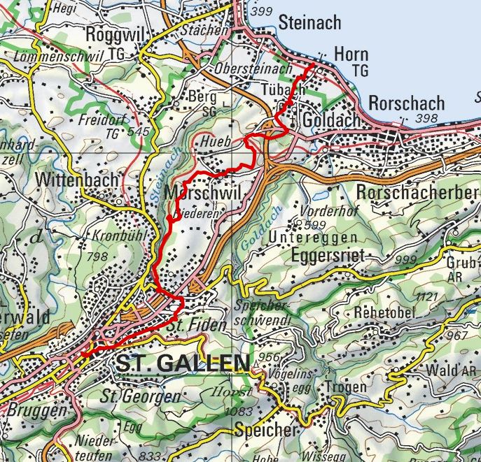 Horn - Tübach - Mörschwil - Espentobel - St. Fiden - St. Gallen