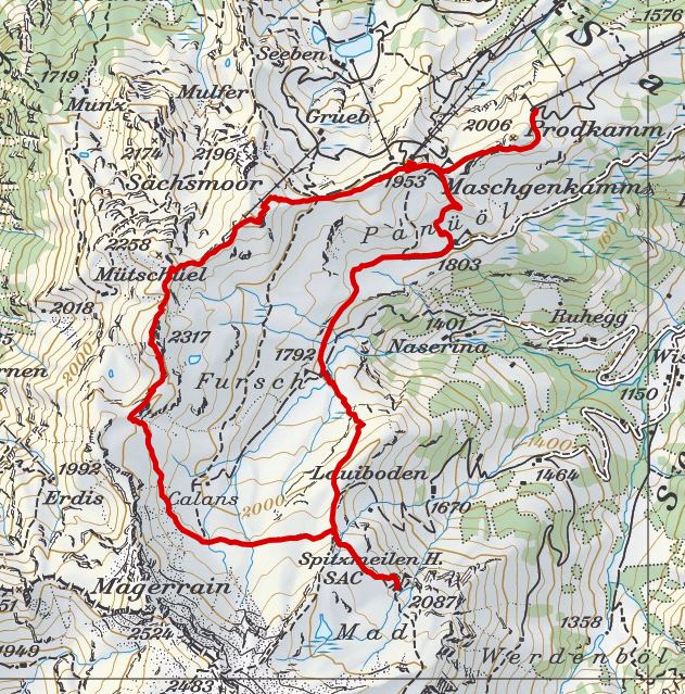 WProdkamm - Ziger - Leist - Mütschüelergulmen - Hoch Camatsch - Spitzmeilenhütte - Fursch - Panüöl - Maschgenkamm