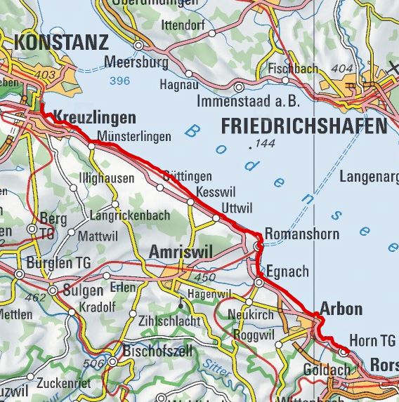 Horn - Steinach - Arbon - Frasnacht - Egnach - Salmsach - Romanshorn - Uttwil - Kesswil - Güttingen - Altnau - Landschlacht - Münsterlingen - Bottighofen - Kreuzlingen - Konstanz