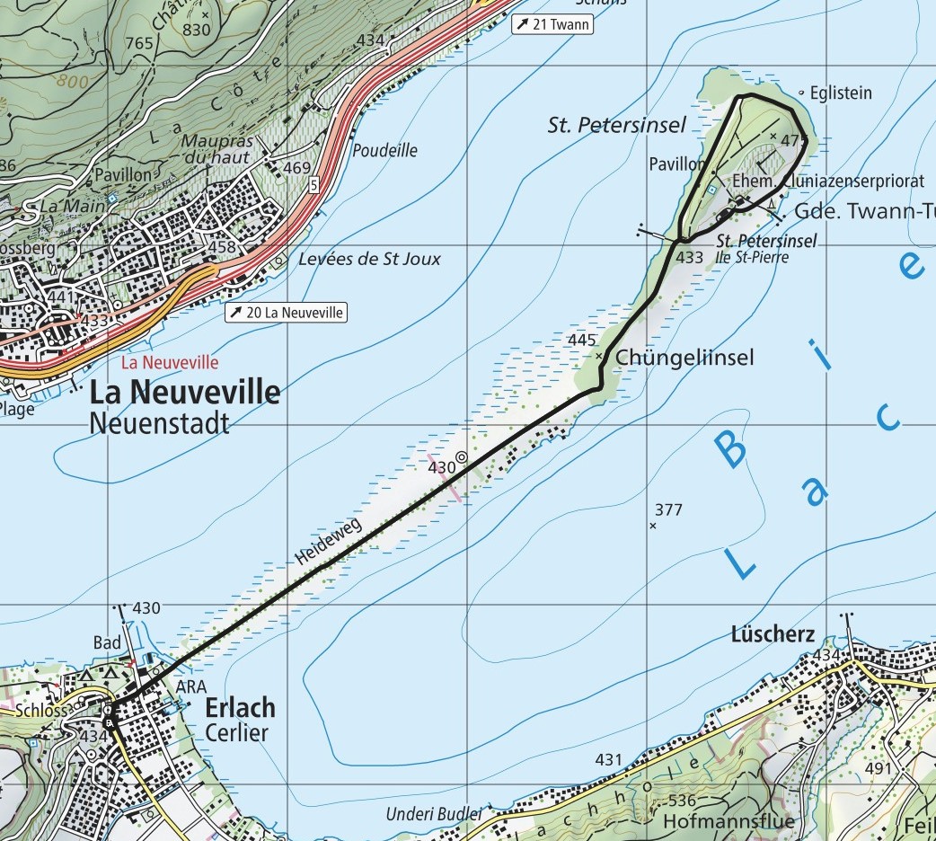 St. Petersinsel - Chüngeliinsel - Heideweg - Erlach - Vinelz - Erlachschole - Hofmannsflue - Lüscherz