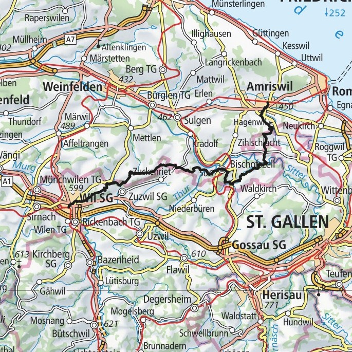 Bischofszell - Entetswil - Gabris - Nollen - Hosenruck - Hagenbuechtobel - Nieselberg - Wil