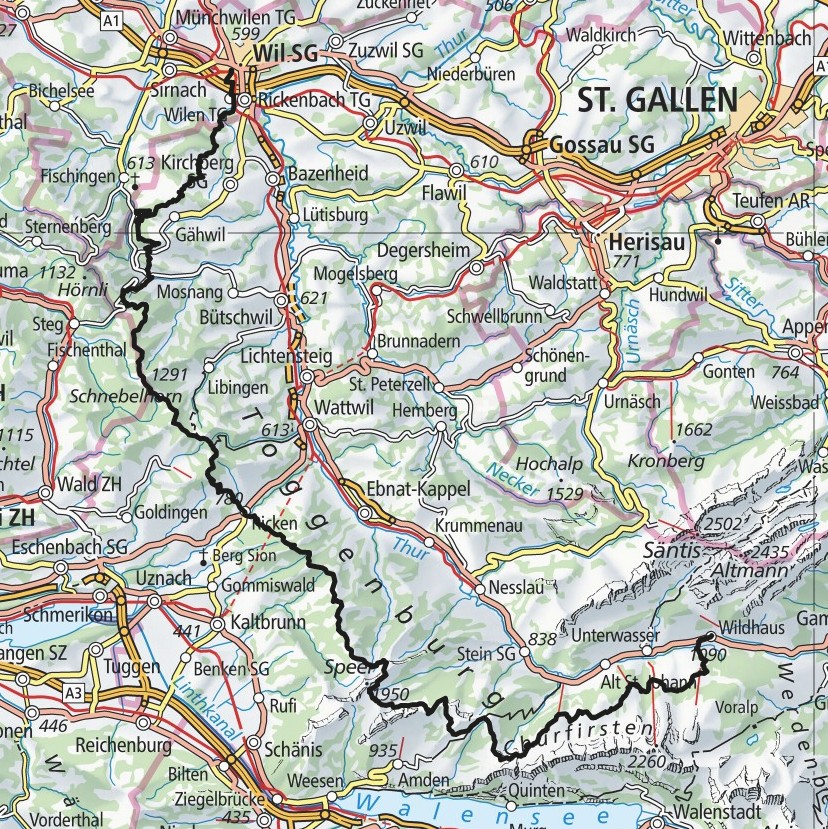 Wil - Rickenbach b. Wil - Giessenfall - Dietschwil - Schallenberg - Sackgrütli - Stäägen - Gadenwis - St. Iddaburg - Senis - Egghof - Mühlrüti - Unterhulftegg - Hulftegg
