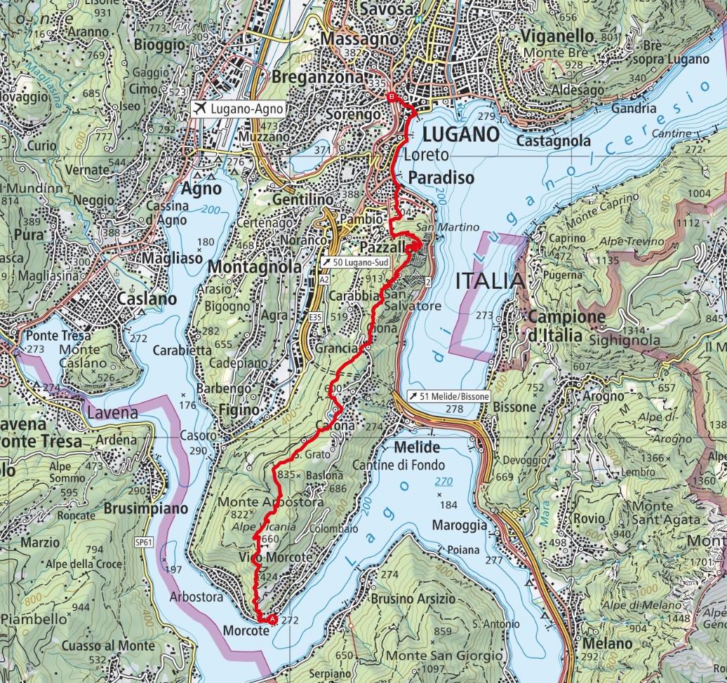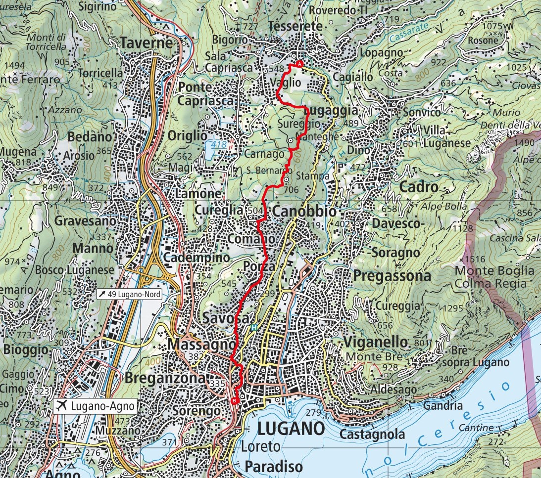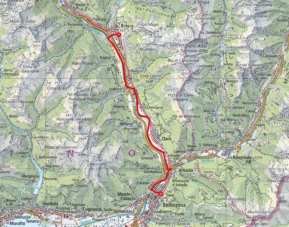 Tesserete - Odogno - Leglio - Luera - Alpe Zalto -Val Mara - Mürècc - Isone - Cima di Dentro - Bedrina - Camorino - Giubiasco - Sementina - Monte Carasso - Bellinzona