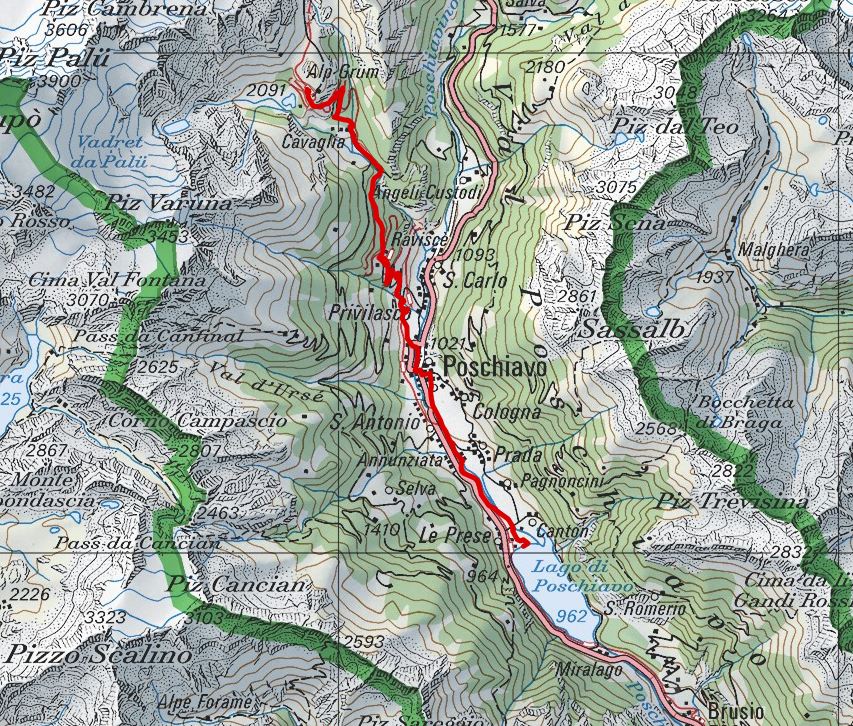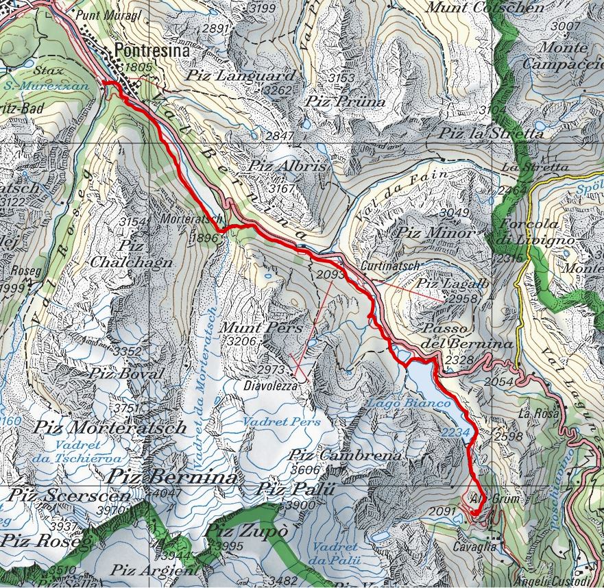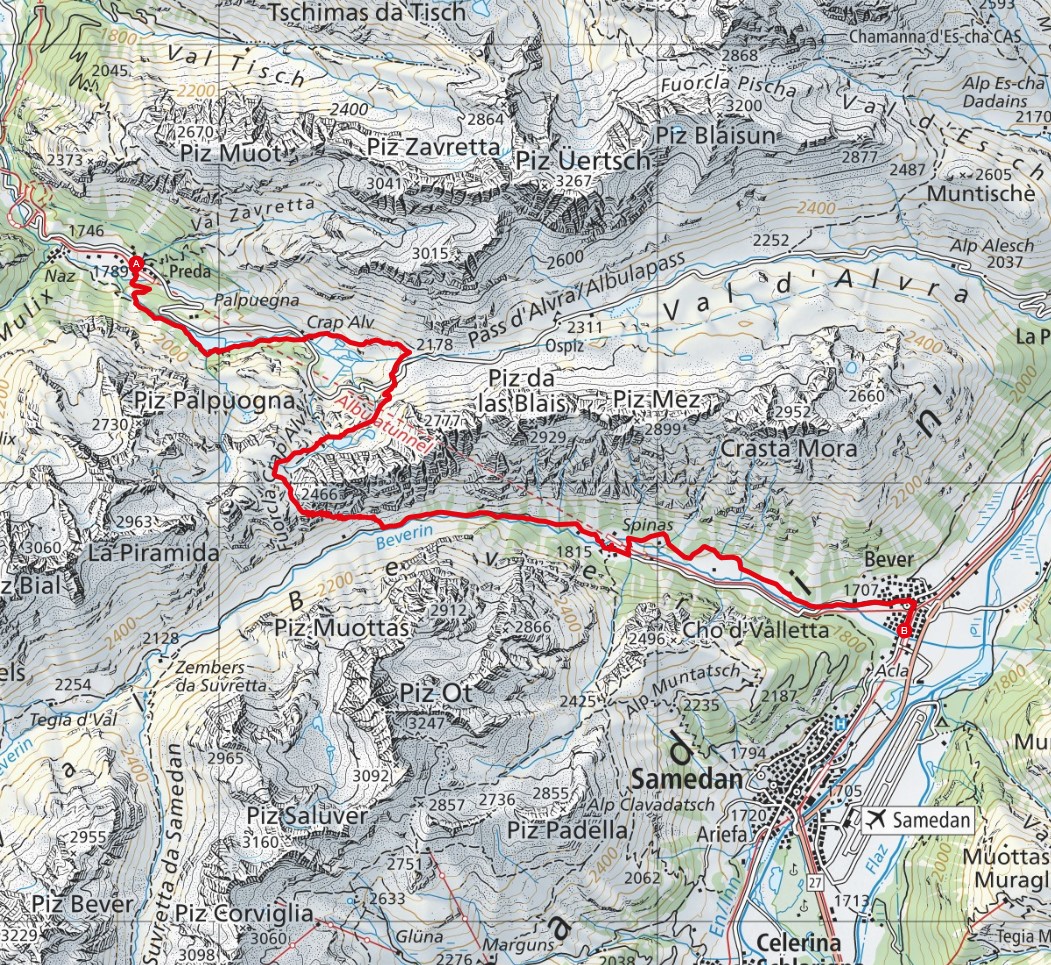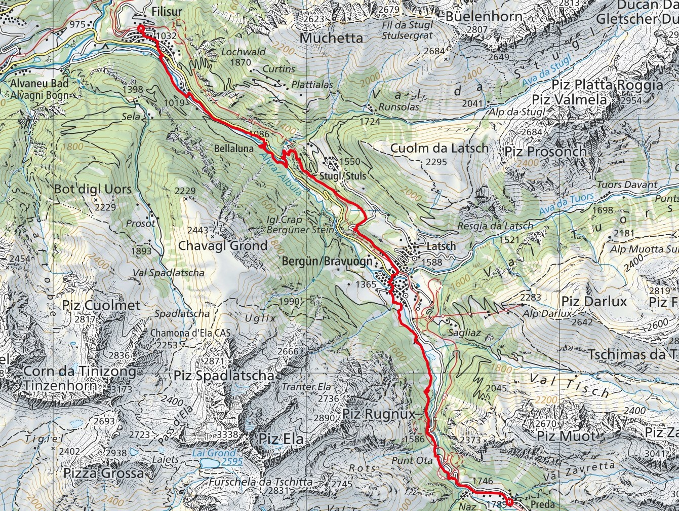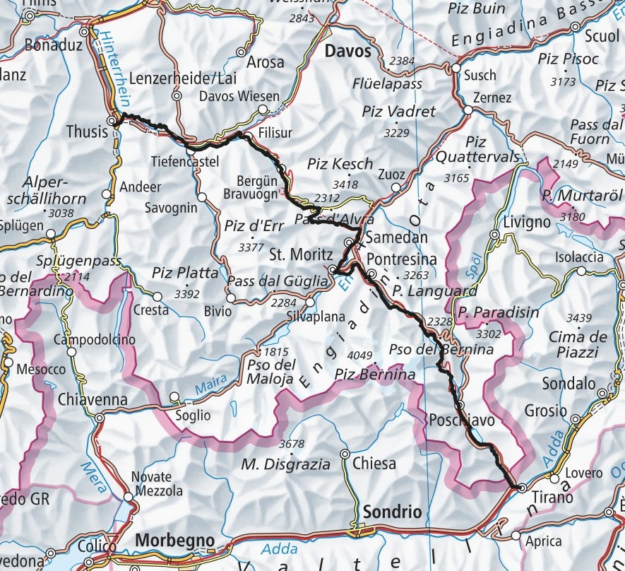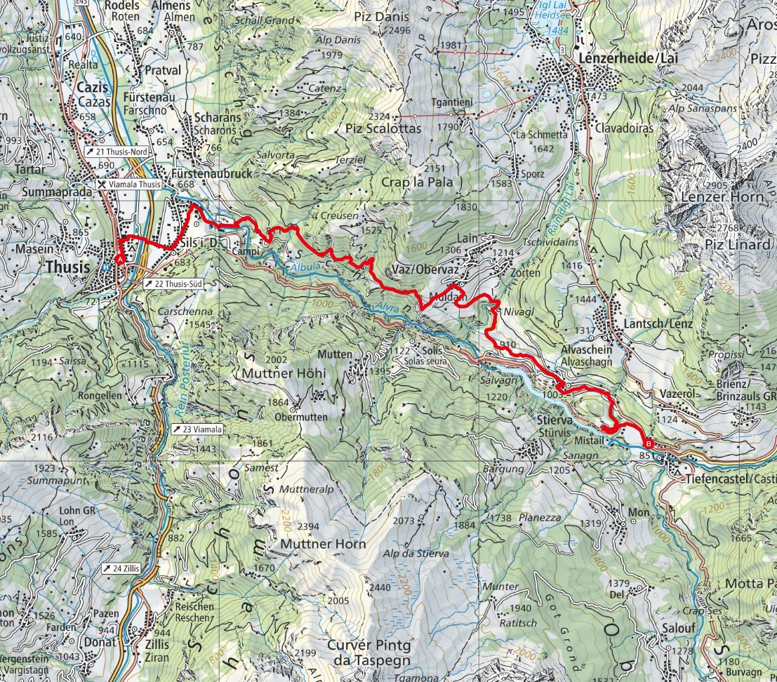 Thusis - Sils im Domleschg - Albula - Parnegl - Moir - Val da Peurs - Val Varaina - Muldain - Bot Cheua - Motta - Alvaschein - Pardis - Mistail - Prada - Tiefencastel