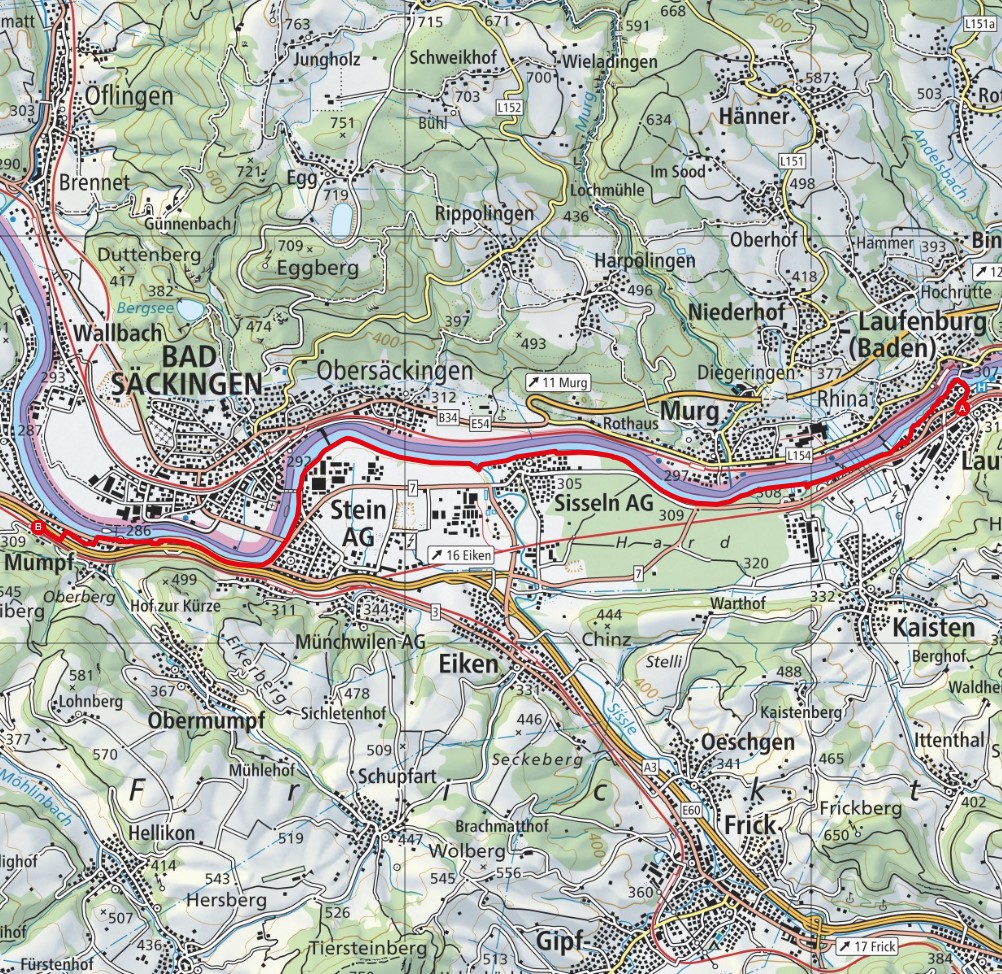 Rheinfelden - Augarten - Rinau - Kaiseraugst - Augst - Pratteln - Rothaus - Schweizerhalle - Muttenz