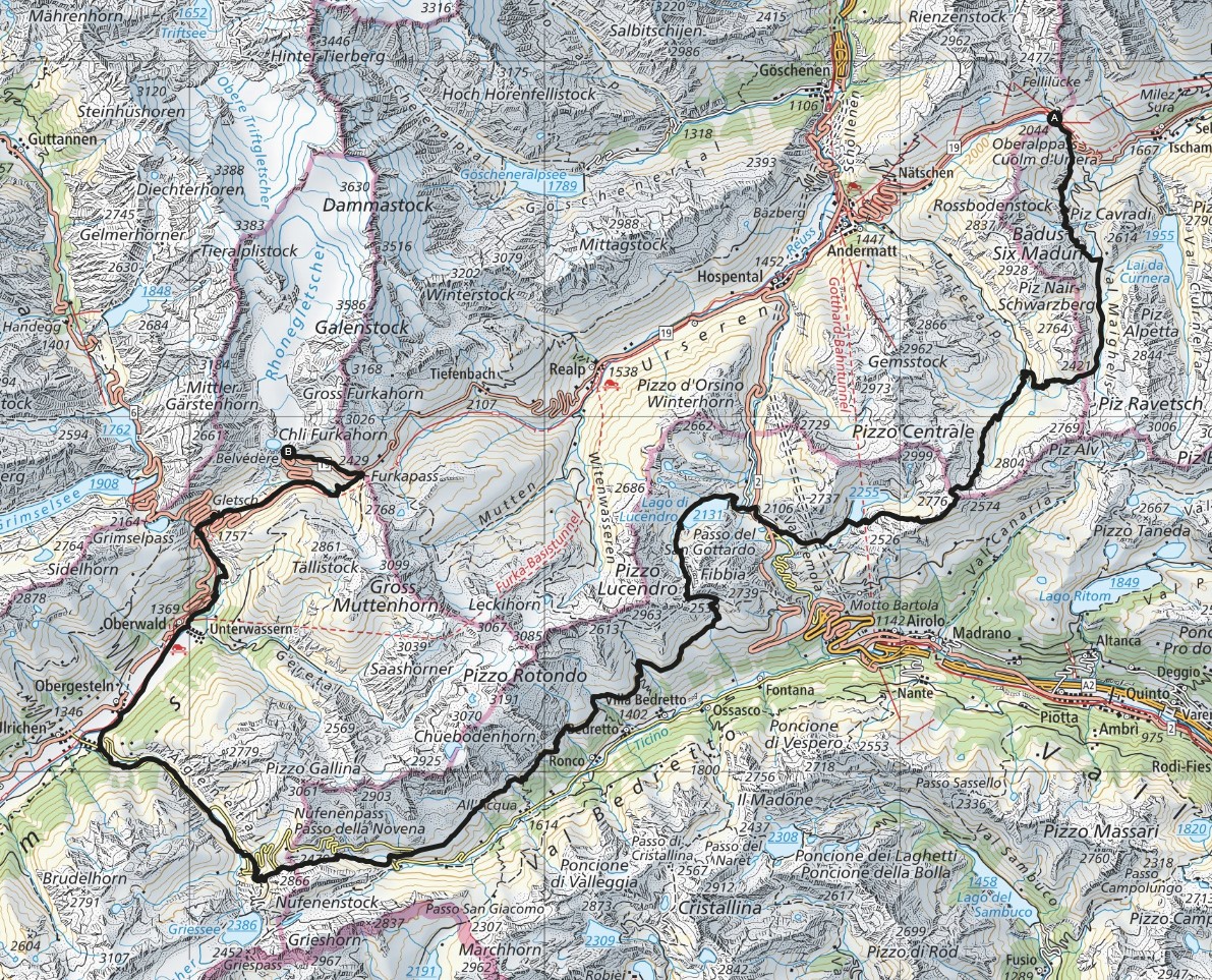 Ritzingen - Gluringen - Reckingen - Überrotten - Münster VS - Geschinen - Hinnermatt - Ulrichen - Zum Loch - Obergesteln - Schweitmatte - Oberwald