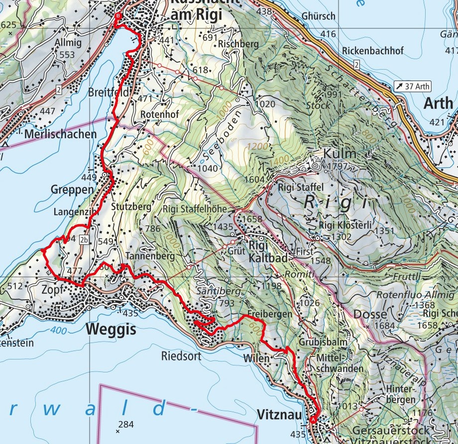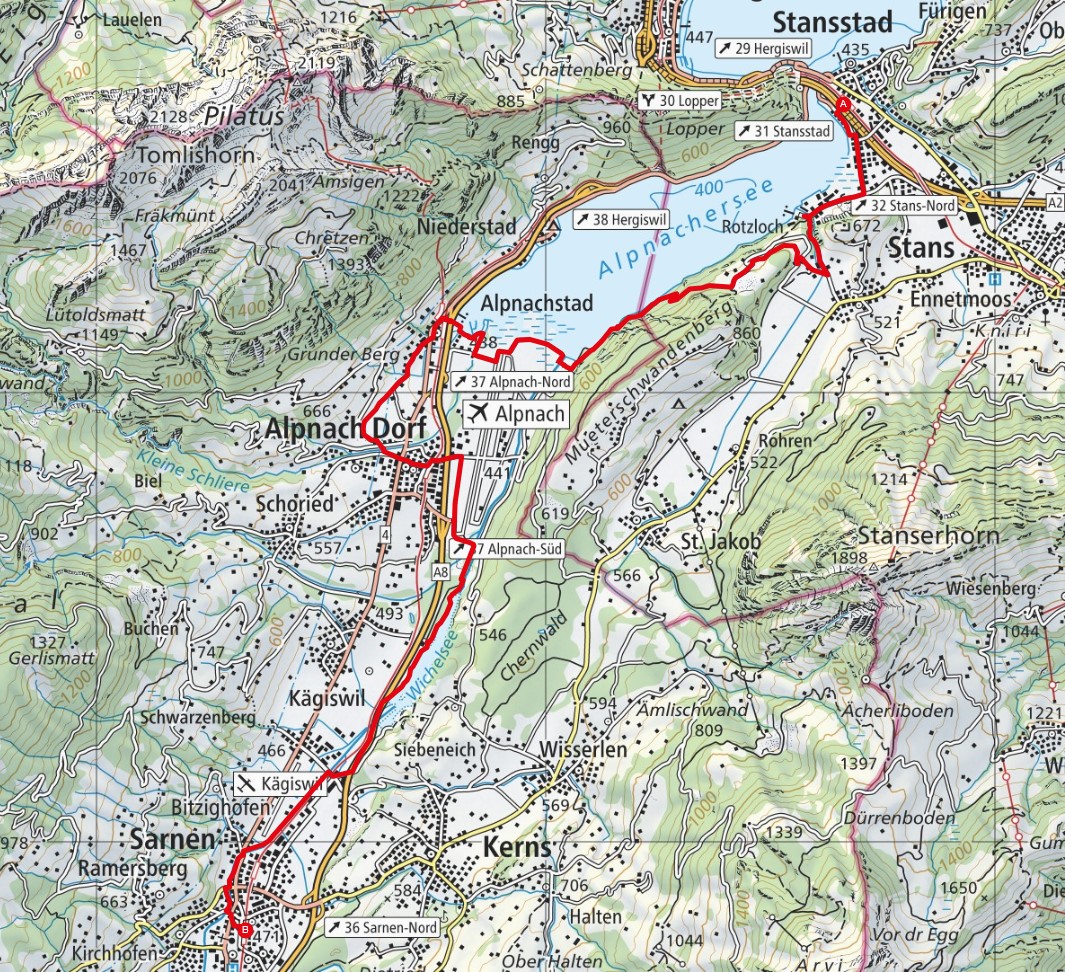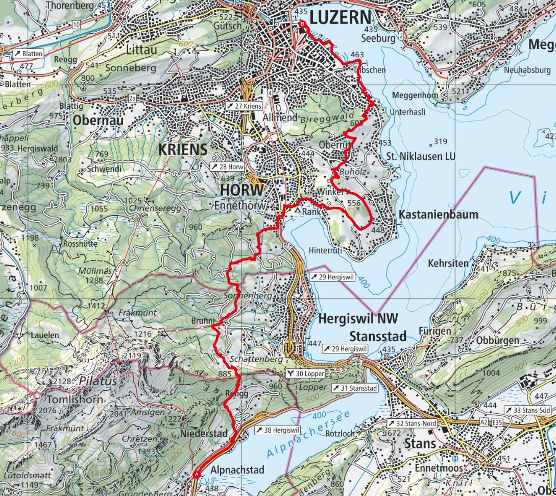 Alpnachstad - Niederstad - Renggpass - Renggeli - Horüti - Eggboden - Ennethorw - Horw - Knolligen - Felmis - Bireggwald - Matthof - Tribschenhorn - Luzern