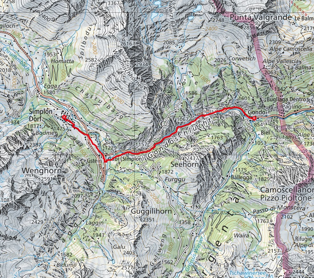 Simplon Dorf - Gabi - Alte Kaserne - Gondoschlucht - Fort Gondo - Ramserna - Gondo